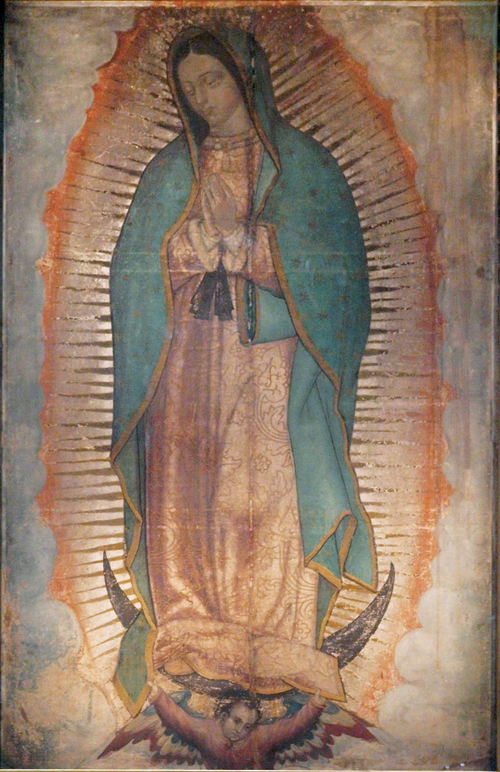 The date: December 9, 1531; the place: what is now Mexico City, 10 years after the defeat of The Aztecs by Cortez. On Saturday, 12/9/1531, Juan Diego was on his way to his catechism when he heard music on the top of Tepeyac hill. He climbed to the top of the hill and saw Our Lady who spoke to him, sending him on a mission to Bishop Zumarrago, to ask him to build a chapel. The bishop was skeptical. Juan Diego returned to Our Lady and suggested she send one of the nobles, as he was of no importance (middle class). She told him to persist, and so the next day, Sunday, he saw the bishop again who told him to ask for a sign so that he might believe that she really was Our Lady. When Juan Diego returned home Sunday evening he found his uncle, Juan Bernadino, very ill. The following day, Monday, Juan Diego did not go to see Our Lady but stayed with his uncle. That night his uncle thought he was dying and so sent Juan Diego to get a priest to administer last rites. Tuesday morning Juan Diego left to get a priest, bypassing Tepeyac Hill in an effort to "dodge" Our Lady. The Virgin intercepted him and told him, "The thing that disturbs you is nothing. Am I not here, I who am your mother? Your uncle is healed" (Juan Diego would hear from his uncle later that he was in fact healed that morning after having a vision of Our Lady.) Our Lady then told Juan Diego to collect flowers on the top of Tepeyac Hill. She then arranges them in his tilma and tells him not to open the tilma until in the presence of the bishop. When Juan Diego opens his tilma before Bishop Zumarrago to show what he thought was the sign, flowers blooming out of season, the image of Our Lady of Guadalupe miraculously appears on his tilma. Within two weeks a chapel was built at the base of Tepeyac Hill. Juan Diego lived there the rest of his life, recounting the miraculous events to all who came. When he died in 1548, his friend Antonio Valeriano wrote what is the primary historical source regarding the events: The "Nican Mopohua," written a mere 17 years after they occurred.